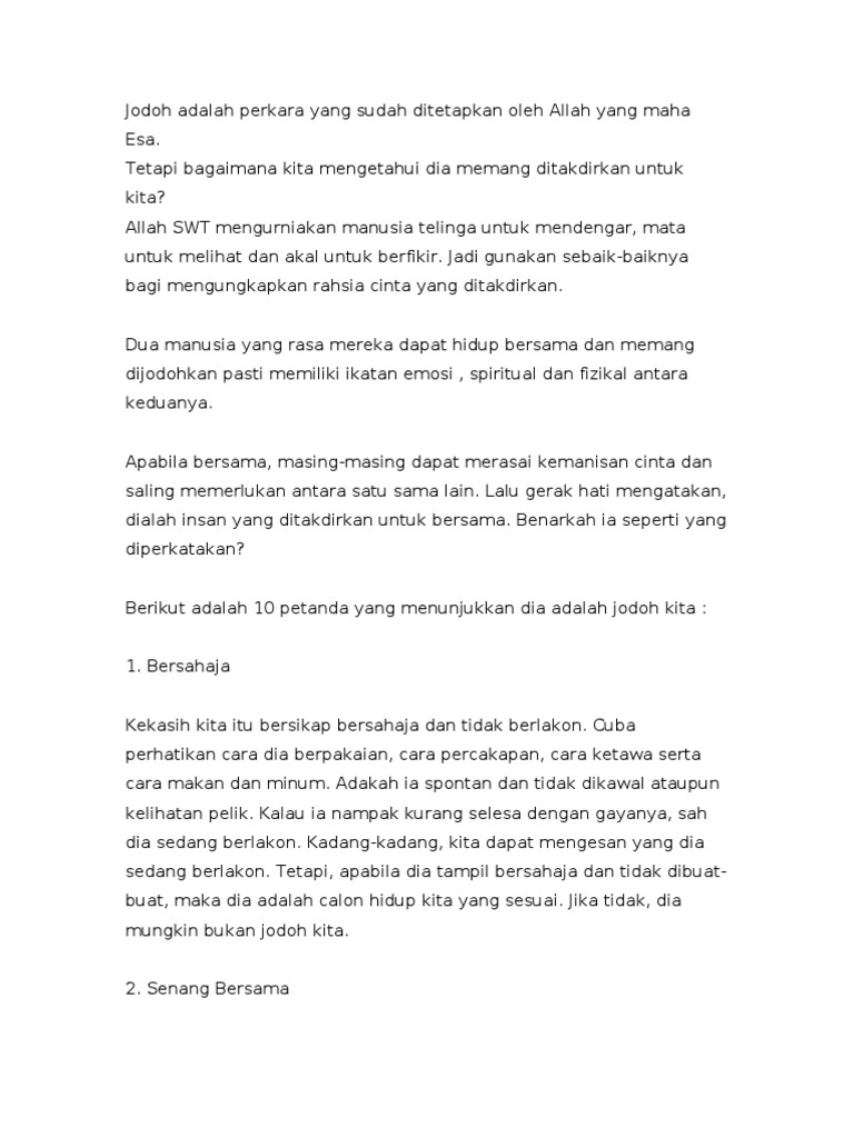 Cinta itu adalah anugrah yang allah berikan kepada hambanya jadi, kita sebagai penikmat cinta hendaknya mengutamakan cinta kepadanya yaitu allah swt sebab dialah yang mendatangkan. Jawapannya, jodoh merupakan salah satu rahsia allah yang sering dipertanyakan dan dipersoalkan oleh manusia. Yakinlah pasti kebagian, bila tidak di dunia ya di akhirat.