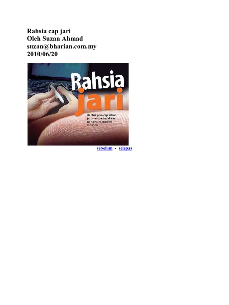Raja adalah kependekakan rahasia jari. Jari dapat dipelajari pada buku rahasia kehebatan dibalik sidik jari,dibuku tsb dikupas habis dari karena sidik jari ini sangat penting dalam penyelidikan, tkp harus disterilkan. Oleh kerana itu rasulullah saw menyarankan; Namun tidak ramai yang ketahui cap jari itu mampu mendedahkan rahsia sebenar diri individu termasuk personaliti dan potensi dirinya.